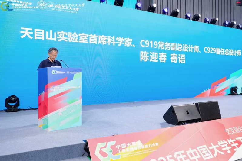 本次大赛特邀天目山实验室首席科学家、C919常务副总设计师、C929首任总设计师陈迎春总设计师出席,陈迎春寄语当代大学生勤奋学习,为国家航空航天事业作贡献,教育部工程训练教学指导委员会副主任委员清华大学教授李双寿出席、北京航空航天大学副校长赵魏胜分别致辞。