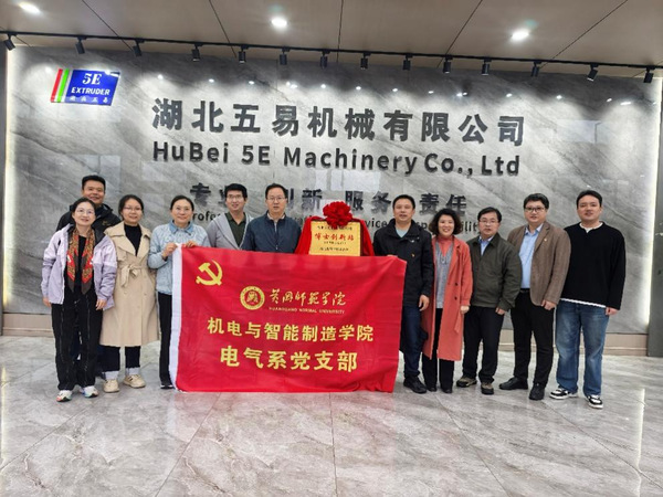 在湖北五易机械有限公司。学院副院长刘小俊、浠水县委组织部人才办周主任及散花镇党委书记李书记等一起为“湖北五易机械有限公司博士创新站”揭牌。在联合主题党日活动环节,参会人员一起学习党的二十届四中全会精神等内容并就学习内容发言、谈体会等,完成规定动作后。校企双方结合实际,开展技术交流等活动,五易公司相关负责人汇报了公司基本情况、行业背景和产品研制情况,五易公司科技副总、“博士创新站”领衔博士、电气系高峰老师汇报了公司未来发展十大技术需求,公司技术总监就某型号产品研制过程中遇到的实际问题与支部教师进行了探讨,并就相关问题开展了深入的技术交流。